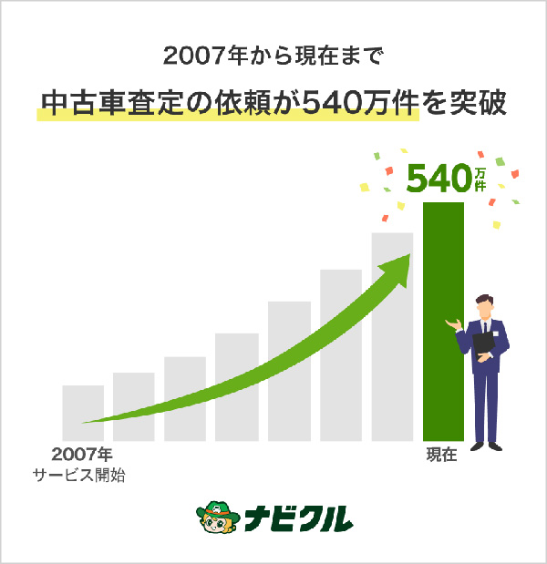 2007年にサービスを開始してから、累計で540万件以上(2024年10月時点)の中古車査定依頼の実績もあり、納得して愛車を売却できます◎